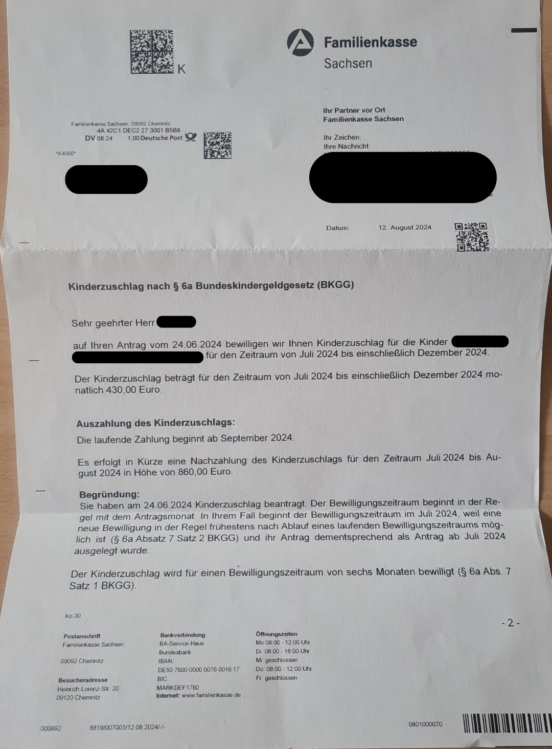 Statul german oferă sprijin pentru familiile care au copii, însă trebuie îndeplinite anumite condiții. Dacă ești interesat cum poți obține anual între 3.000€ și 5.000€, lasă un mesaj mai jos și verificăm împreună dacă te încadrezi pentru a primi subvențiile.